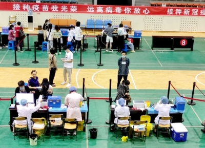 在文体中心篮球馆接种现场,来自社区和机关事业单位的接种者们戴好口罩、带齐证件、有序排队。按照测量体温、签署知情同意书、信息登记等流程,完成预检、登记、接种、留观四个步骤。在留观30分钟后无不良反应方可离开现场。每一位医护人员都严格按照新冠病毒疫苗接种流程和技术规范进行操作,以确保接种工作顺利开展。
