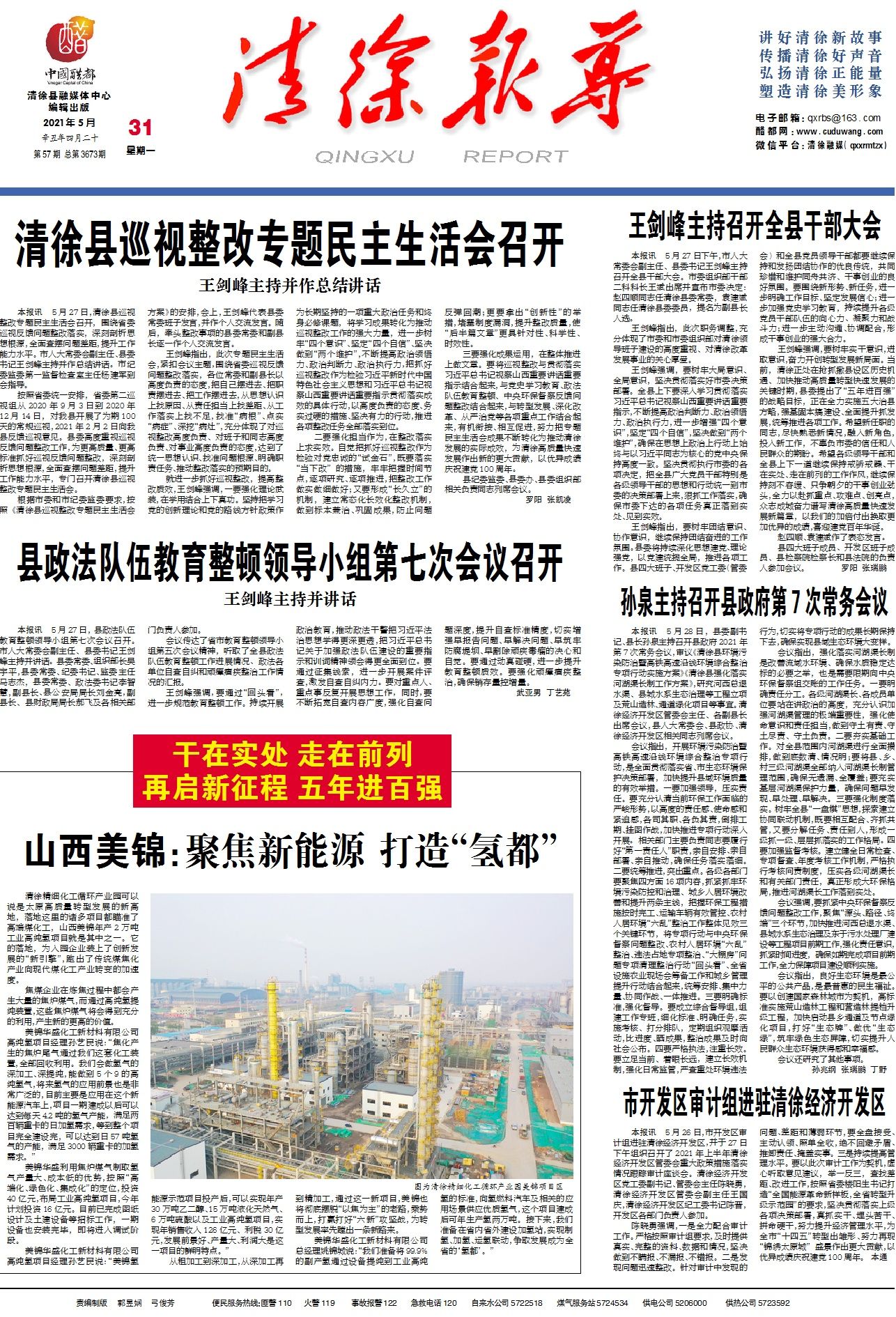 本报讯5月26日,市开发区审计组进驻清徐经济开发区,并于27日下午组织召开了2021年上半年清徐...