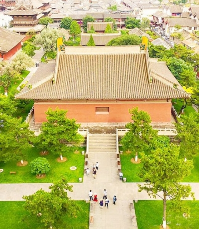 华严寺,位于大同古城内西南隅,始建于辽·重熙七年(1038年)。依据佛教经典《华严经》取“慈悲之华,必结庄严之果”的大乘教义而命名。华严寺是我国现存年代较早、规模较大、保存较完整的一座辽金寺庙建筑群。寺院坐西向东,山门、普光明殿、大雄宝殿、薄伽教藏殿、华严宝塔等30余座单体建筑,分别排列在南北两条主轴线上。殿宇巍峨,气势雄伟,布局严谨,规模宏大,占地面积达6.6万平方米。分为上寺与下寺,1961年,被国务院公布为首批全国重点文物保护单位,国家4A级旅游景区。