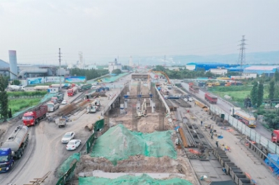 据施工单位相关负责人介绍,该工程全长1.17公里,桥梁宽18.5米,两侧辅道均为15米,设计时速60公里。截至目前,该工程主线桥已完成桩基101根,系梁19个;承台3个,墩柱63根;盖梁7个,桥台1座;左、右幅辅道桥T梁安装和桥面铺装、照明工程土建及管道铺设已全部完成;主线桥预制T梁完成209片;路基土方完成开挖47000m3;石渣换填完成34000m3;挡土墙完成432米;水泥稳定碎石底基层完成22000m2;水泥稳定碎石下基层完成22000m2;水泥稳定碎石基层完成22000m2;沥青混凝土面层完成26000m2;路缘石安装完成2100米,路面小矮墙完成2100米。