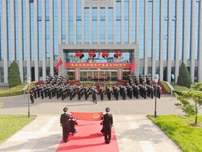 伴随着雄壮的《义勇军进行曲》,在120余名公安干警的注目礼中,鲜艳的五星红旗徐徐升起,迎风而展。随后,干警们面向警旗重温了入警誓词。