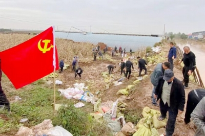 抢险,堵口,冲锋,太原市委和清徐县委调集的武警、消防、应急救援、机关干部等各路抢险大军闻令而动,紧急奔赴决口处,小武村的党支部委员、普通党员、全村的青壮年们紧跟其上,很快形成了一支800多人的抢险队伍。