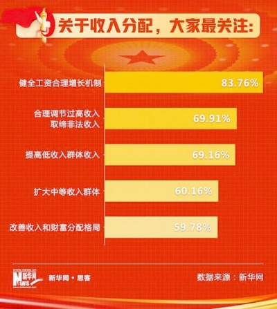 值得注意的是,榜单上的“全过程人民民主”一词,不少网民认为,发展全过程人民民主,为实现中华民族伟大复兴筑牢民主基石。“健全工资合理增长机制”备受网民关注“收入分配”是网民最关心的话题之一,“健全工资合理增长机制”获得超八成网民关注,同时“合理调节过高收入、取缔非法收入”等话题关注度持续走高。在评论区,“收入分配”吸引了大量网民投票和留言,让工资合理又持续地上涨是多数网民心声。
