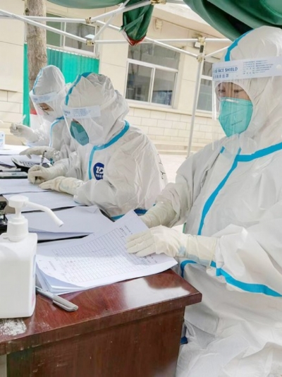 4月18日17:11分,我们从小店回来的第二天下午接到紧急命令,重新组队赴清徐河东支援。支援河东的30人大家庭再次出征,我扭头看见她在一边偷偷抹眼泪,明白这位比我大不了几岁的姐姐是在想孩子了。然而,她回转身时,早已擦干眼泪,再次舍小家为大家,义无反顾地冲在抗疫的最前线。