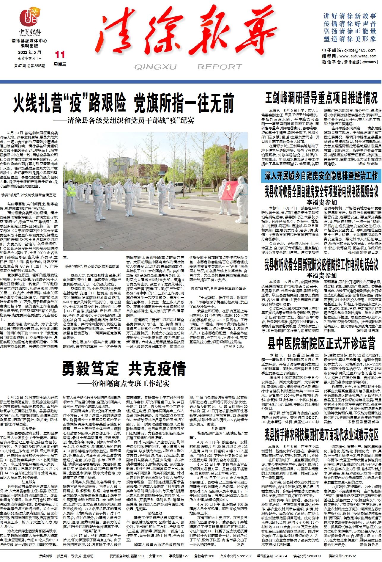 本报讯我县重点民生工程——清徐县中医院新院区5月9日正式开诊,开启了清徐中医院发展史上的新篇章,...