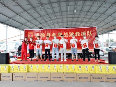 6月13日下午,清徐金鹰战狼救援队在城南农贸市场举行抗疫表彰大会,向疫情期间勇担重任,协助县政府搬运、装卸、运送抗疫物资的志愿者们颁发荣誉证书,并联合太原天一农牧有限公司为抗疫一线的志愿者赠送慰问品。