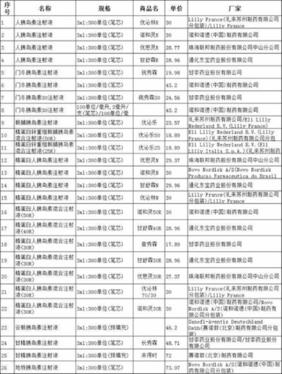 三、第六批国家组织药品集中采购(胰岛素专项)目录