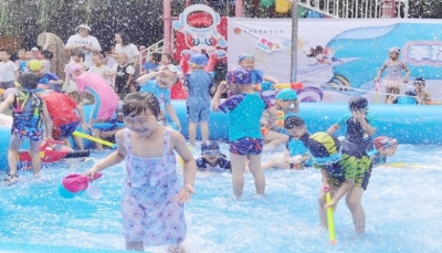 本报讯近日,东湖学前教育集团举行了专属毕业季之“不负夏日嬉水童年”主题活动,热身准备、泳衣秀场、枪林弹雨、泡沫狂嗨、水枪大战,一瞬间,整个操场上充满了尖叫声、欢呼声、呐喊声,此起彼伏,你进我退、你躲我闪……欢快的笑声响彻云霄。
