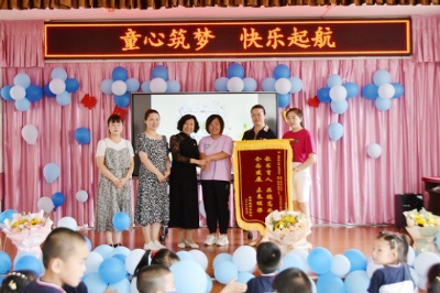 在这次毕业典礼上,西城园区大三班幼儿秦梦佳的妈妈,将一面写有“教书育人品德高尚全面发展未来栋梁”的锦旗,几经周折终于送到集团园园长刘晓珍手中。之所以几经周折,是由于因疫情防控所限,为避免人员集聚,这次毕业典礼未能够邀请家长们前来参加。这位家长在孩子即将从幼儿园毕业离开之际,硬是“违反园规”,将这份难以用言语表达的感激之情,以赠上锦旗的方式,向精心培育孩子三年的幼儿园与每一位幼儿老师,致以最诚挚的谢意!