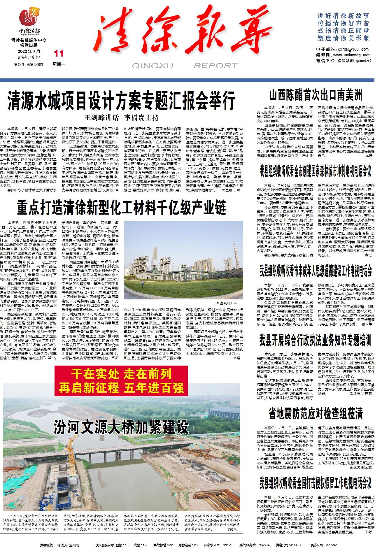 7月5日,建设中的汾河文源大桥雏形初现。首个主墩承台历时两天两夜完成浇筑。文源大桥是我县首座大型...