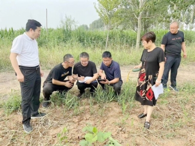 县农业农村局与统计局联合在黑城营村对大豆玉米带状复合种植模式进行作物种植面积的现场勘察核实