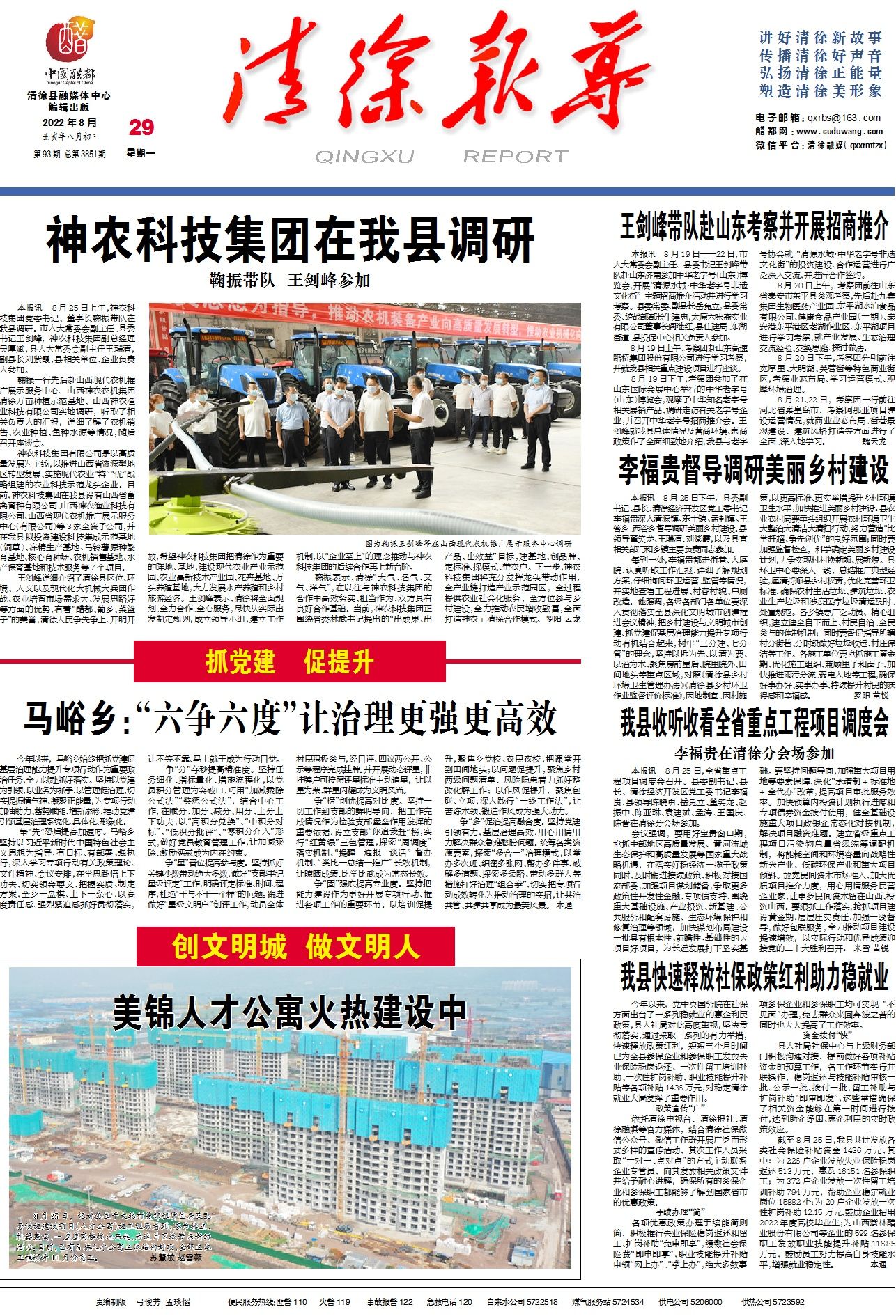本报讯8月25日下午,县委副书记、县长、清徐经济开发区党工委书记李福贵深入清源镇、东于镇、孟封镇...