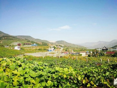 来到葡峰山庄,一定不要忘记登上位于龙山之首的望湖亭去一饱眼福。站在高高的望湖亭里,向南远眺:视野开阔,只见东湖如一面明镜在阳光下闪着光泽,水阁楼英姿勃勃地挺立于湖畔,政府办公大楼、锦绣家园等高楼显示着清徐的现代与活力;顺沟北望:只见马名山上一片葱郁,白色的舍利塔,彩色的梵宇寺若隐若现,为百年的老林增添了几分俏气;环顾四周:沟深坡陡,红砖灰顶的房屋或有序、或随意地分布着,烟囱里冒出的炊烟笼罩着它们,让你有“疑见天宫”之感;回过头来:2000余亩的葡萄树遍布沟坡,翠绿的掌形叶,紫红的珍珠粒,清新的空气,不论远望还是近观,都不会引起你的审美疲劳。