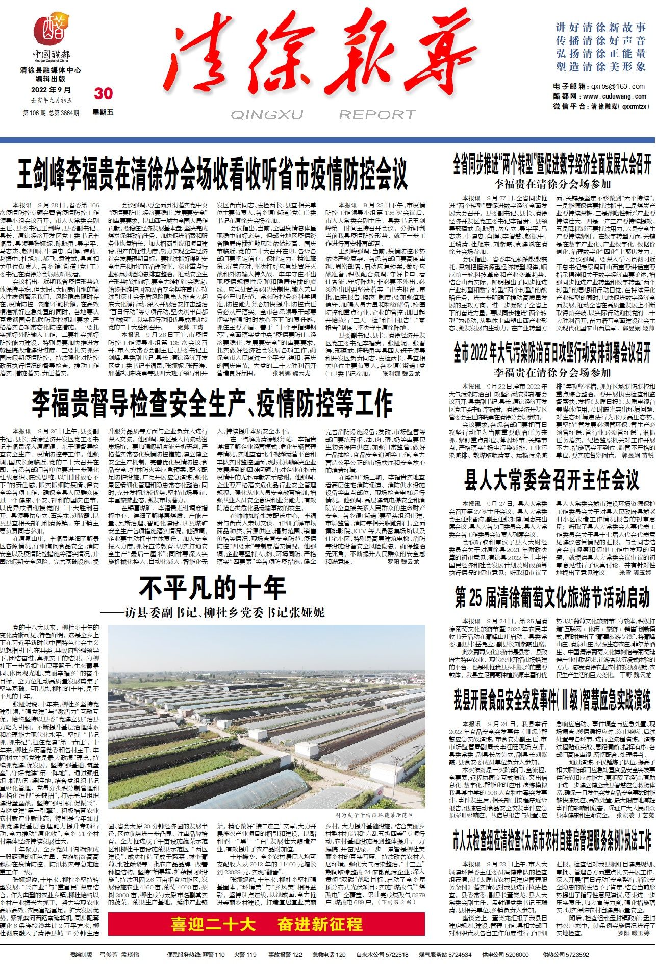 本报讯9月26日上午,县委副书记、县长、清徐经济开发区党工委书记李福贵深入清源镇、东于镇督导检查...