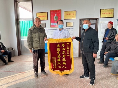 10月28日,孟封镇齐南安村卫生所齐宝林大夫收到了一面来自患者丁晓瑞及其家属送来的锦旗。