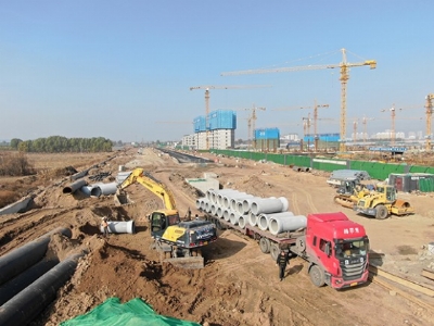 开中路(清泉南路—滨河西路)西起清泉南路,东至滨河西路,全长7.711公里,规划红线宽50米。据施工方介绍,该工程目前排水管线已完成45%,热力管道完成40%,雨水方涵完成48.6%,挡土墙完成39.5%,部分路段已进入路面施工阶段,现在正在进行清文路、清东路两条道路穿路施工。