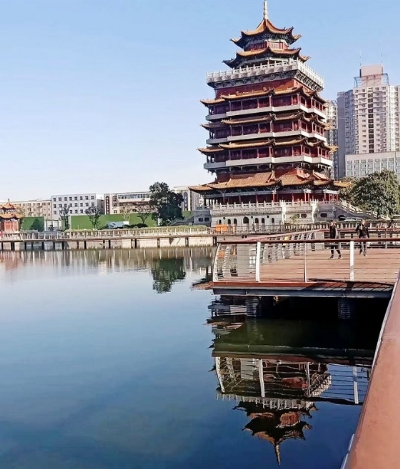 美在深秋与初冬之间,真可谓:微风吹得湖水皱,一袭红叶映晚秋,茶余饭后或空闲,漫步湖畔伴美景。