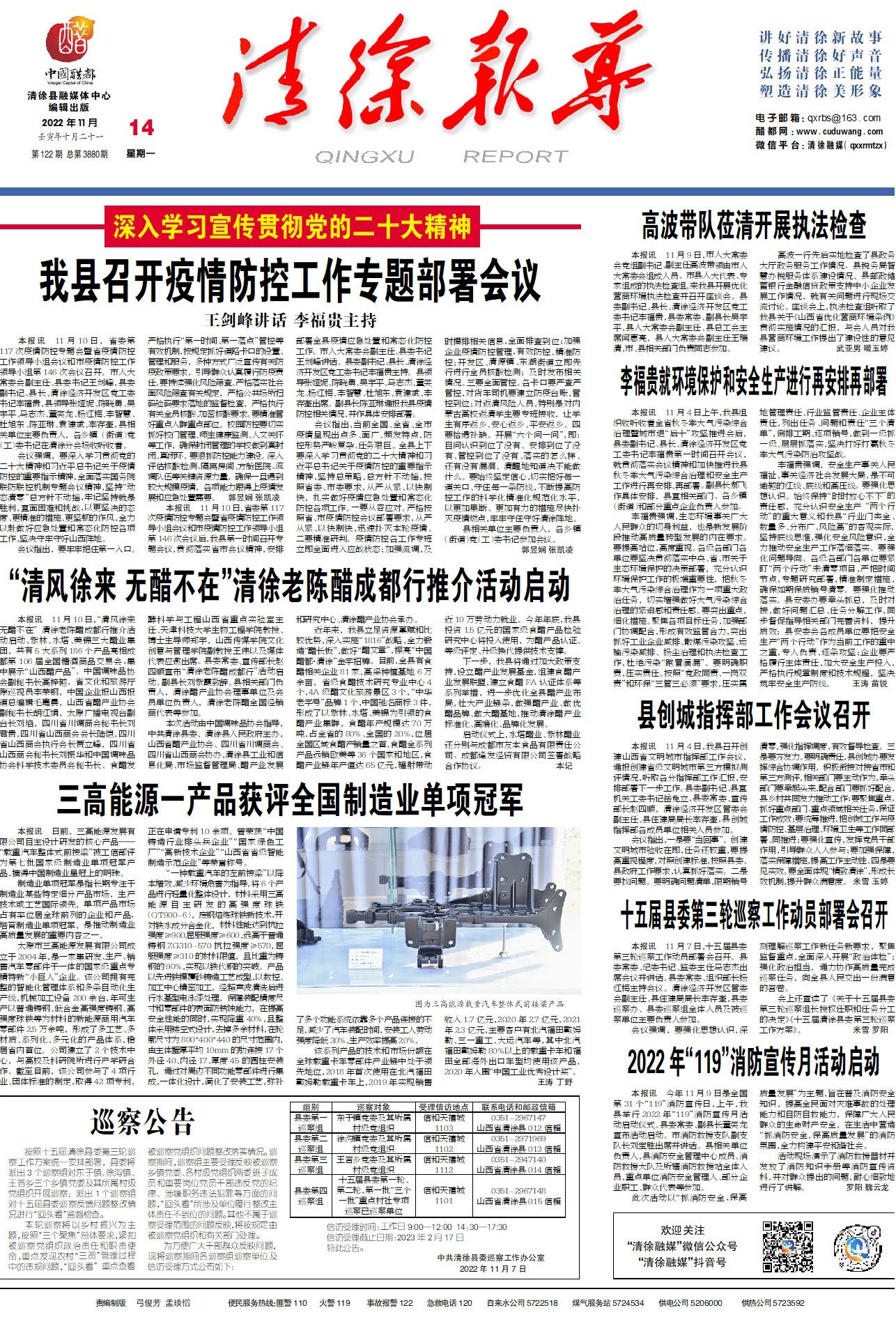 按照十五届清徐县委第三轮巡察工作方案统一安排部署,县委将派出3个巡察组对东于镇、徐沟镇、王答乡三...
