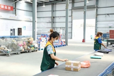 图为邮政公司员工正在分拣快递