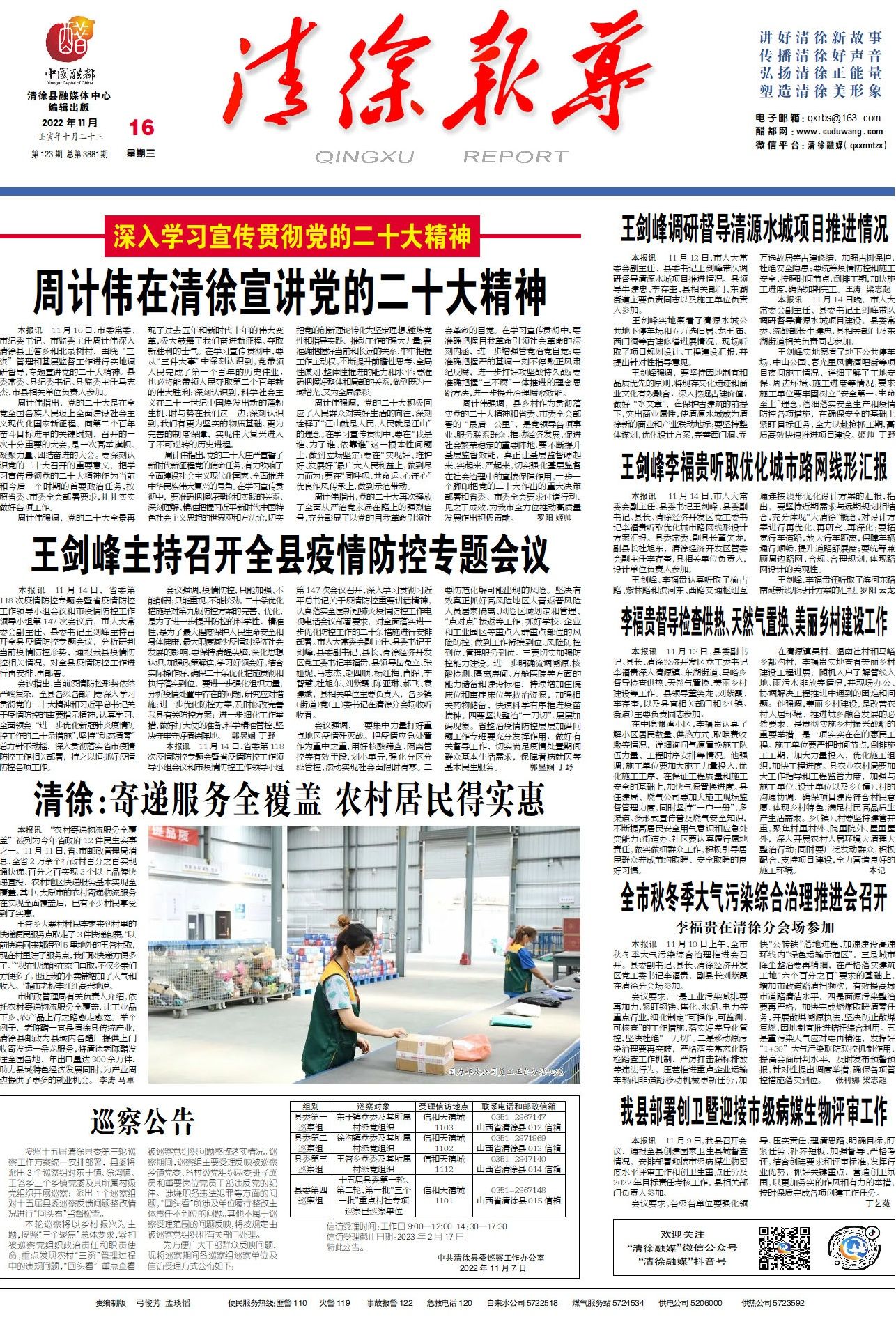 本报讯11月10日,市委常委、市纪委书记、市监委主任周计伟深入清徐县王答乡和北录树村,围绕“三资...