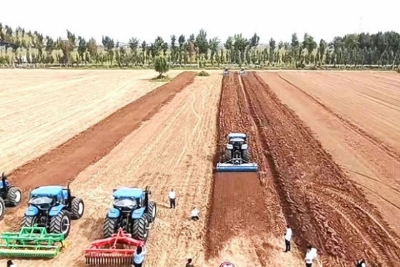 图为常家庄村农作物机械化高效种植集成示范基地