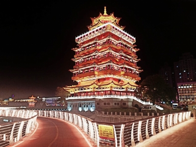 湖嵌县城华北殊,公园奇景笔难书。葡萄垂柳荷花伴,水榭曲桥跑道舒。音乐喷泉出异彩,唱歌跳舞享清福。金牛仙罐传神话,美丽东湖入画图。