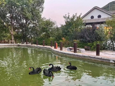 清泉山庄位于清徐县平泉村小峪沟,山庄南峰海拔1060米,西峰海拔1065米(后山为四水平山),北峰海拔1078米,中间环抱一座小山,海拨945米,自古称中隐山。清泉山庄从2009年开始至今,经过十三年的辛勤耕耘,昔日3000多亩裸露山地已经变成植物繁茂、绿树成荫、集山水林田一体的生态文明基地,清泉山庄景区内植物繁茂、绿树成荫,森林覆盖率达到58%,山庄内以中隐山自然环境与中国北方传统建筑设计风格相结合的建筑风格——青砖白墙、古色古香,配上阵阵清静幽远的古琴声,人们置身其中,感受到中国传统文化中的淡泊名利、宁静致远,游走田园山水中,感受人与自然的和谐之美。山庄四面青山环抱,山内的富锶山泉水终年流淌,良好的生态环境再现了旧时清源八景中的“中隐环青、平泉流碧”美景,这里是成人休闲度假的最佳选择,是孩子户外游玩的最佳乐园!