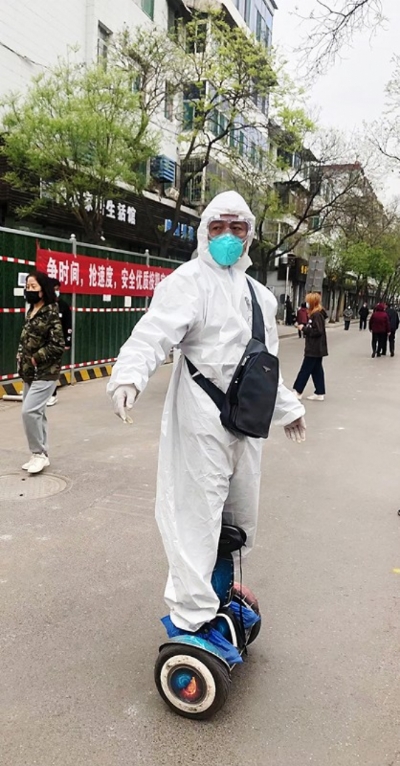 对于自己的爱车,王斌更愿意称呼它为“风火轮”。他说,自己刚学“风火轮”时也人仰马翻地摔倒过几次,练得多了,逐渐熟悉以后才很少摔跤。“风火轮”让他日常的出行效率提高了很多,哪怕是疫情期间,他也常常驾着“风火轮”参与防疫志愿活动,如今早已是不可分割的好伙伴了。与此同时,这位喜欢追新的“大小孩”,还会模仿网络最潮的“手势舞”自跳自演当主角拍抖音,记录和分享生活,开朗豁达的性格,赢得粉丝一片,点赞量高达1.9万。