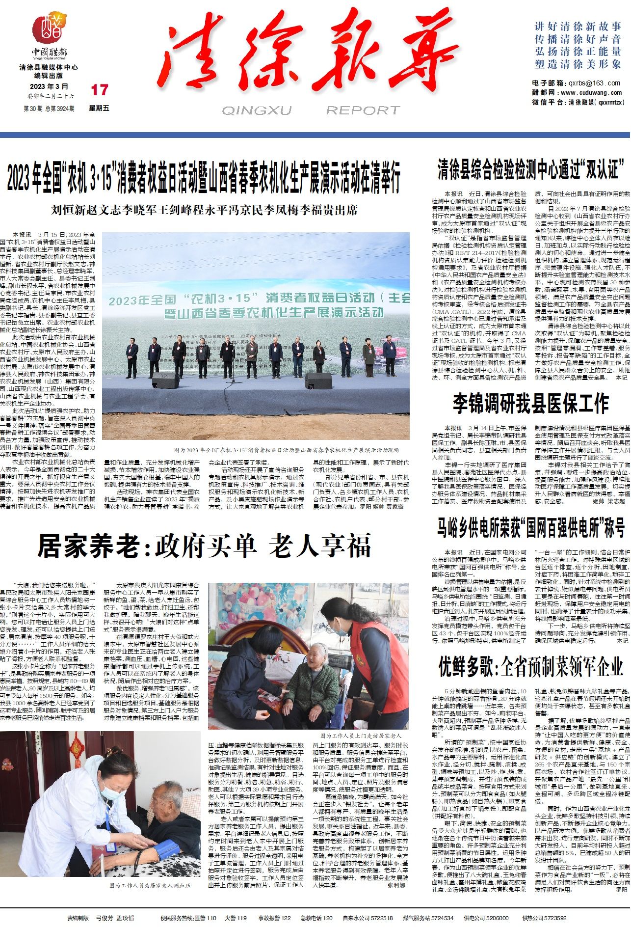 本报讯近日,清徐县综合检验检测中心顺利通过了山西省市场监督管理局资质认定核查和山西省农业农村厅农...