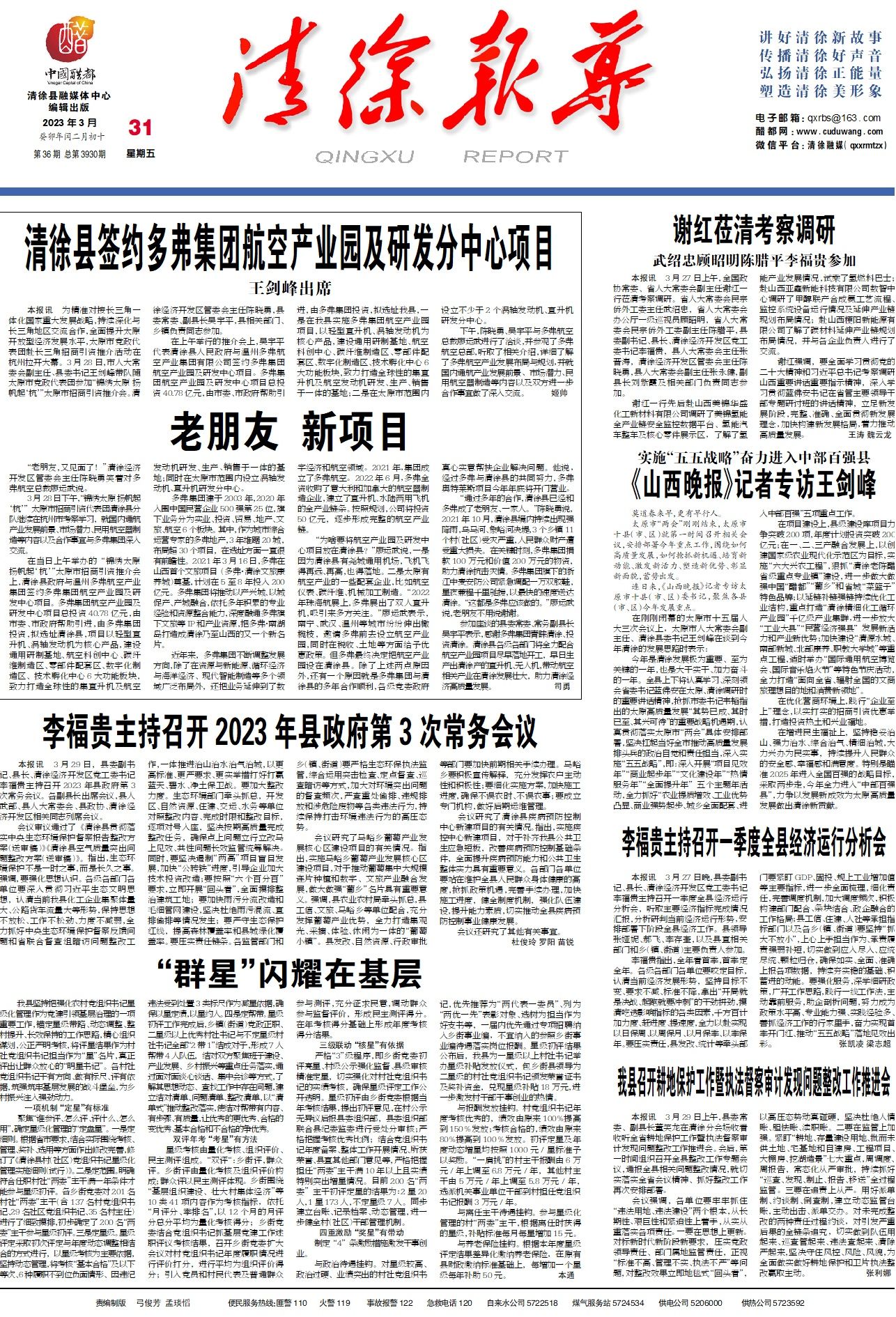 本报讯3月29日,县委副书记、县长、清徐经济开发区党工委书记李福贵主持召开2023年县政府第3次...