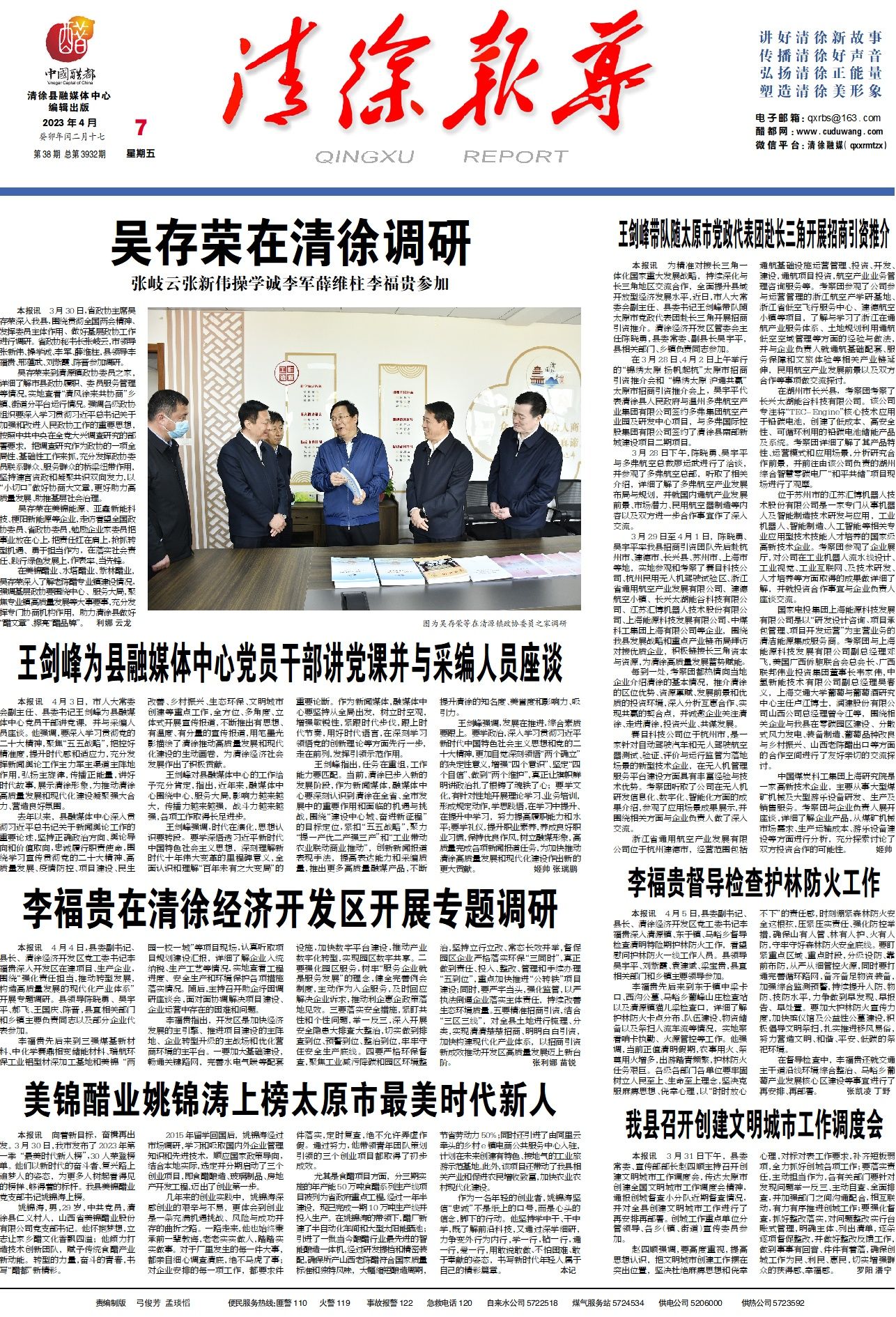 本报讯4月4日,县委副书记、县长、清徐经济开发区党工委书记李福贵深入开发区在建项目、生产企业,围...