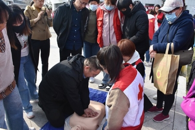 工作人员就气道异物梗阻排除法、创伤急救基本技术以及意外事件的处置等内容进行了系统地讲解,重点讲解了心肺复苏里胸外按压和人工呼吸的关键步骤,并用教具为大家演示施救的过程。现场还发放相关日常急救手册。