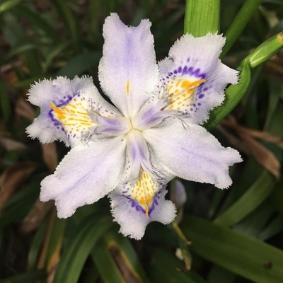柔若丝绸蝴蝶花,翩翩起舞路人夸。清香淡雅美如画,细雨轻风亦恋她。