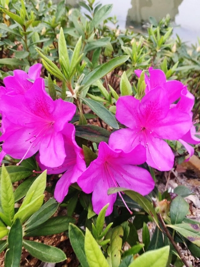 墙外路边绿化带,奇芳绝艳竞相开。人间花草万千种,吾爱杜鹃亦爱梅。