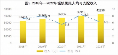 人民生活:全县城镇常住居民人均可支配收入42350元,同比增长6.1%;全县农村常住居民人均可支配收入25664元,同比增长6.3%。