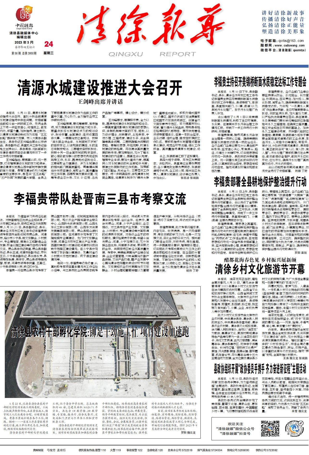 5月22日,记者在清徐县农村干部孵化学院项目施工现场看到,工地上机械声隆隆作响,正在紧张施工,楼...