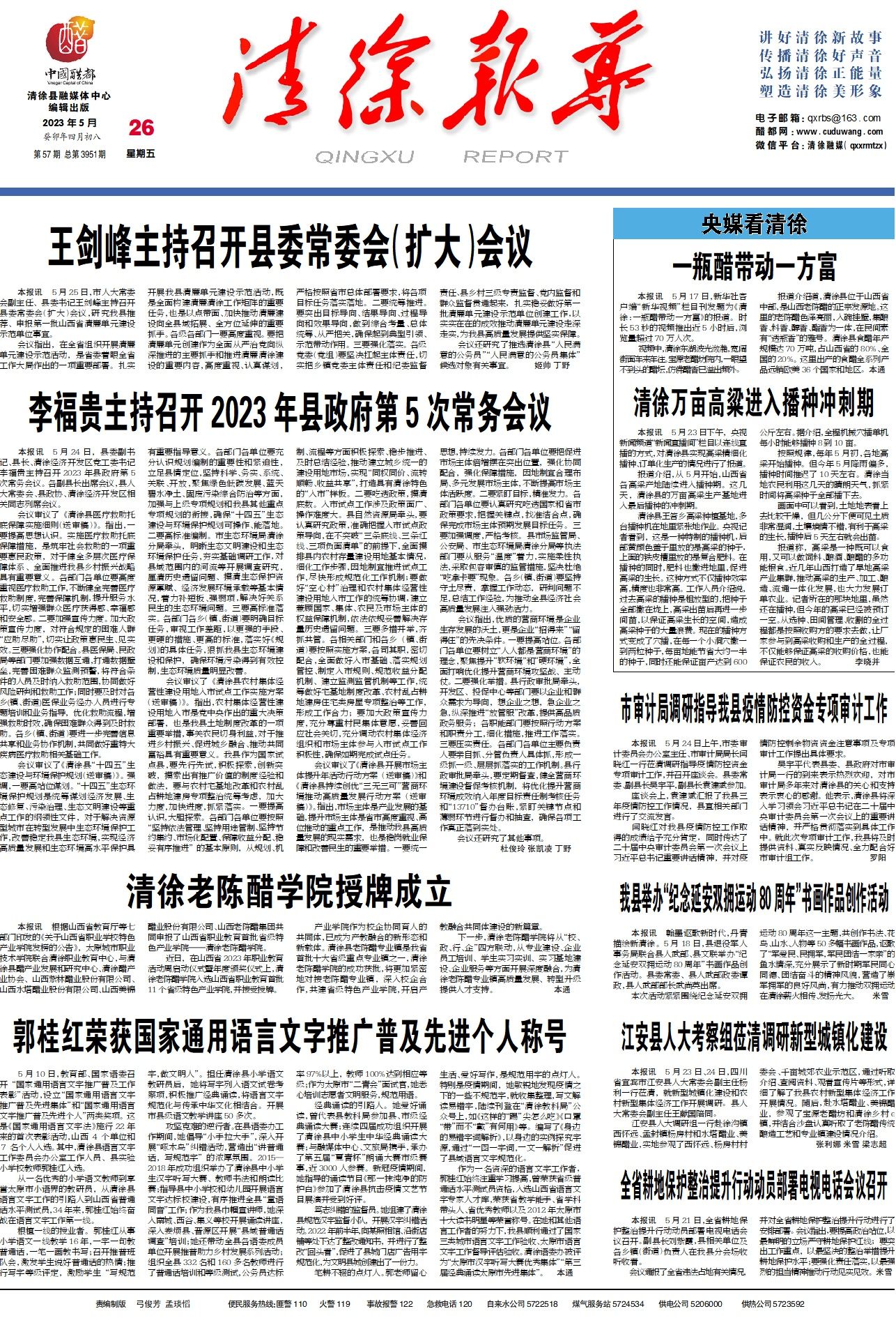 本报讯5月17日,新华社客户端“新华视频”栏目刊发题为《清徐:一瓶醋带动一方富》的报道。时长53...