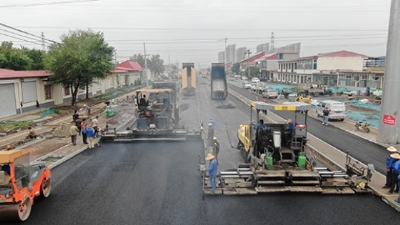 “来来来,倒倒倒,好!停!”“轰隆隆隆……”5月29日,记者走进凤仪街西延工程施工现场,映入眼帘的是一片热火朝天的繁忙景象,一辆辆自卸车配合着大型铺路机正在忙碌着。绵绵的细雨浇不灭工人们的施工热情,冒着热气儿的沥青被压路机反复碾压,走过之处平平整整,又一条崭新的道路即将贯通。
