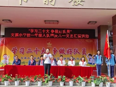 本报讯为进一步培养学生继承和弘扬中国少年先锋队的光荣传统,增强学校少先队组织的力量,6月1日,清徐县文源小学校举行了以“学习二十大争做好队员”为主题的一年级入队仪式暨庆六一文艺汇演活动。