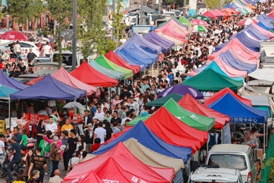 走进集市会场,一眼望去,棚点遍布,此起彼伏的叫卖声,全国各地的名小吃、清徐特色的美味食物、种类繁多的衣服……赶会的人们穿行在各个摊位前,选购心仪物品,熙熙攘攘、人气高涨,所到之处皆是流连忘返的烟火气。届时还邀请了小丑杂技巡演、马戏表演等,掀起阵阵欢乐的热浪,赢得观众阵阵喝彩。