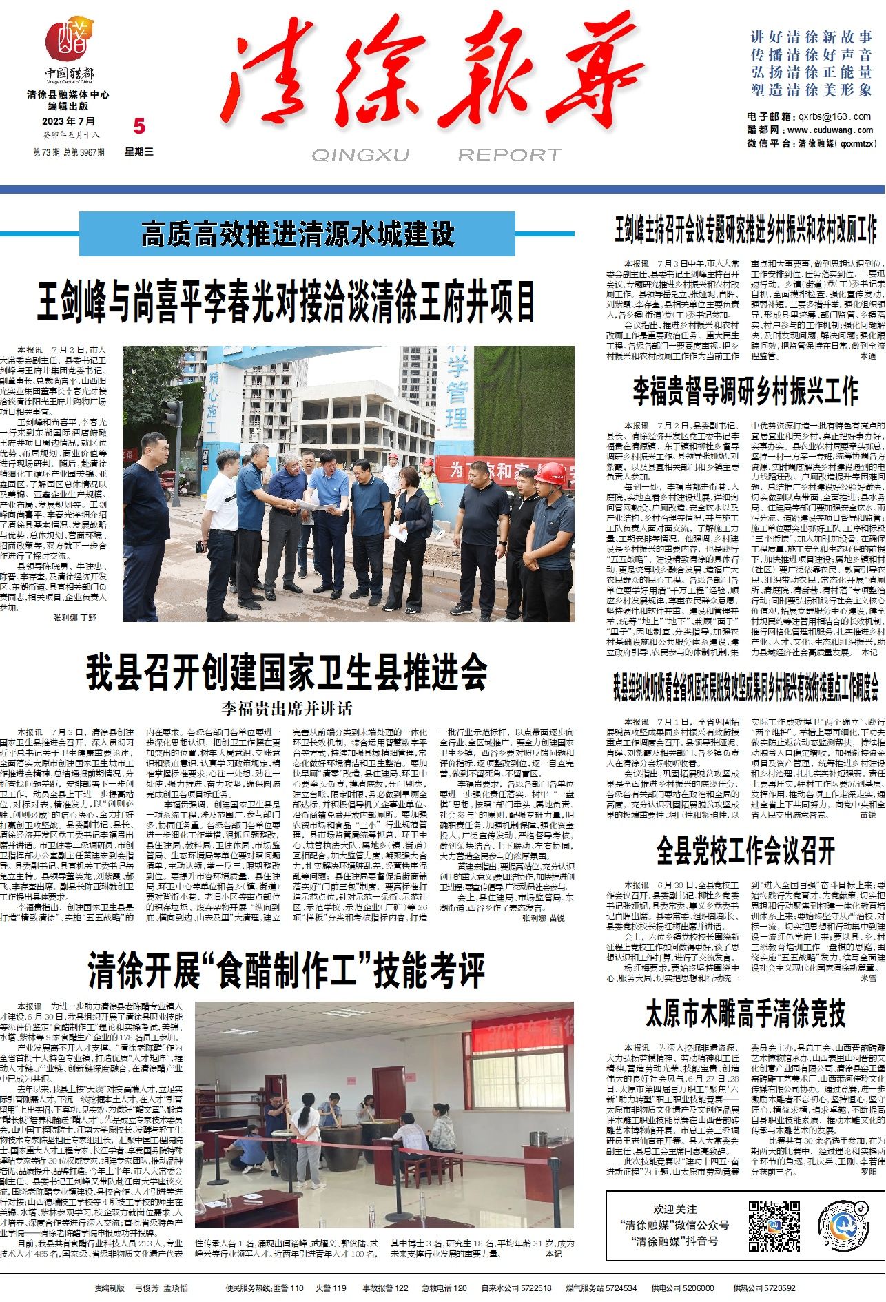 本报讯7月3日,清徐县创建国家卫生县推进会召开,深入贯彻习近平总书记关于卫生健康重要论述,全面落...