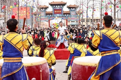 一支锣鼓队被人群包围着,只见,中间一位年轻后生挥舞着鼓槌,将全身力气集聚在鼓槌上,稳健且有节奏地从高处砸下来,咚咚的鼓点发出震耳欲聋的响声,这声音是锣鼓队的灵魂,带动着整支队伍,齐刷刷进入整个旋律里。铿锵的镲声,抑扬而有力,追随着鼓点,时而紧急如火山喷发的岩浆,热情而激昂,时而激荡如飞流直泻的瀑布,疾驰而快爽,时而低缓如汩汩流淌的泉水,灵动而轻缓。