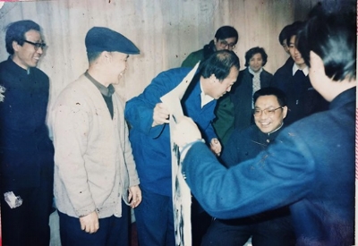 邓朴方(左四)返校看望任进宝(左三)等老师