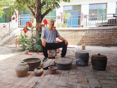 张成元师傅,92岁了,头脑清晰,瘦高个子。寻找话题,慢慢开聊。张师傅是村里最后一代陶人。祖籍河北武安。一家子逃荒落户高花。