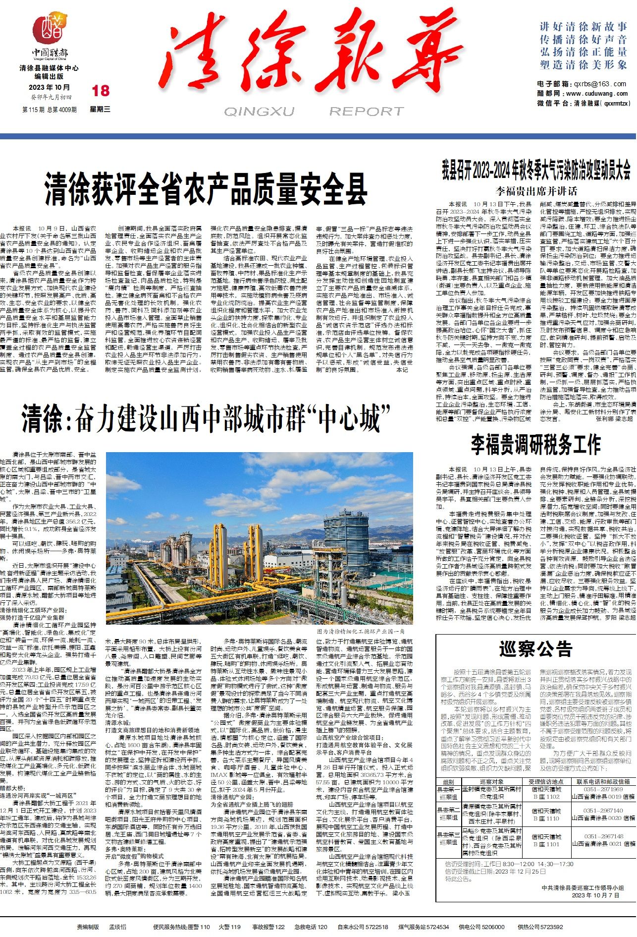 癸卯年九月初四 第115期总第4009期 18 星期三 QINGXUREPORT 讲好...