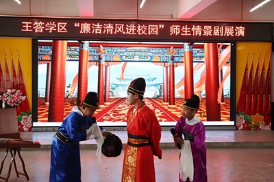 本报讯11月10日,一场以“廉洁清风进校园”为主题的师生情景剧在王答学区拉开帷幕。通过大家喜闻乐见的校园文化形式,师生表演身边故事和亲身经历,体验人物心理变化,领悟新时代清廉文化。