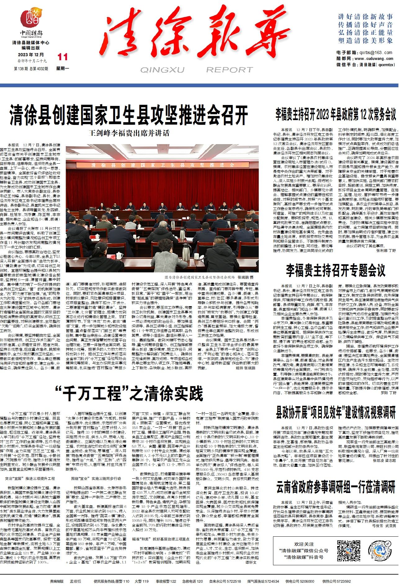 本报讯12月7日下午,县委副书记、县长、清徐经济开发区党工委书记李福贵主持召开2023年县政府第...