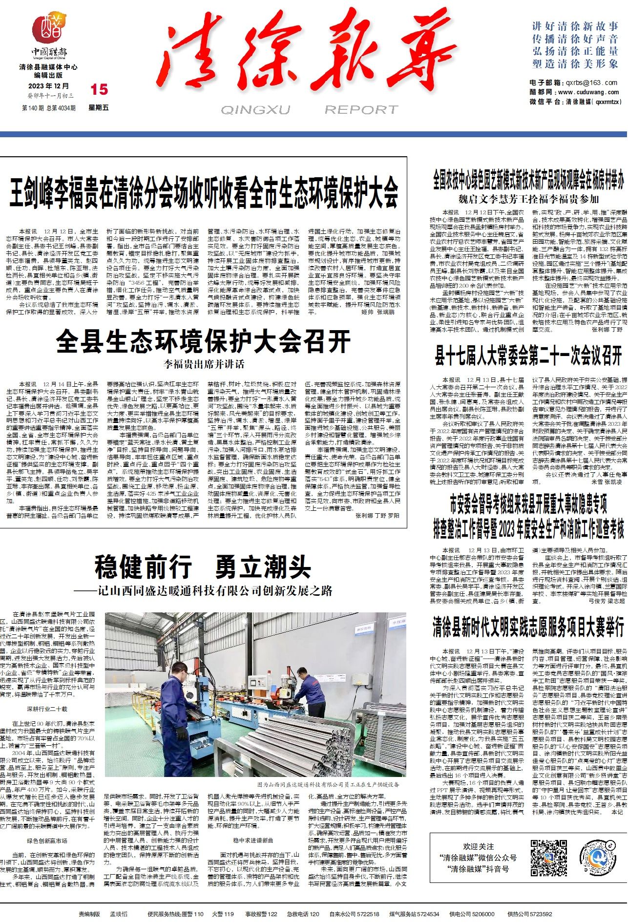 本报讯12月14日上午,全县生态环境保护大会召开。县委副书记、县长、清徐经济开发区党工委书记李福...