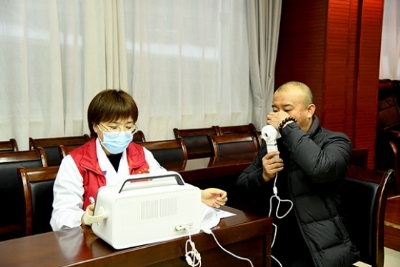 诊治现场,医护人员认真细致地对前来义诊的机关职工进行慢阻肺筛查,耐心解答大家关心的问题,并免费提供血糖、血压、心电图等检测。同时,围绕慢阻肺的早期发现、防治、戒烟方法、家庭氧疗等相关知识进行健康宣讲普及。