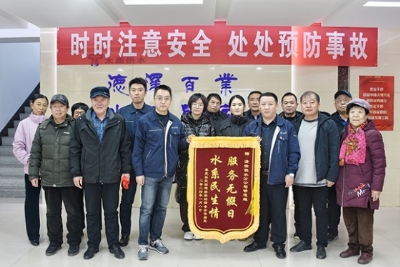 本报讯1月9日,粮站宿舍部分居民和春苑社区工作人员自发来到太原供水清徐分公司赠送锦旗,对该公司工作人员用心为民服务表示由衷感谢。